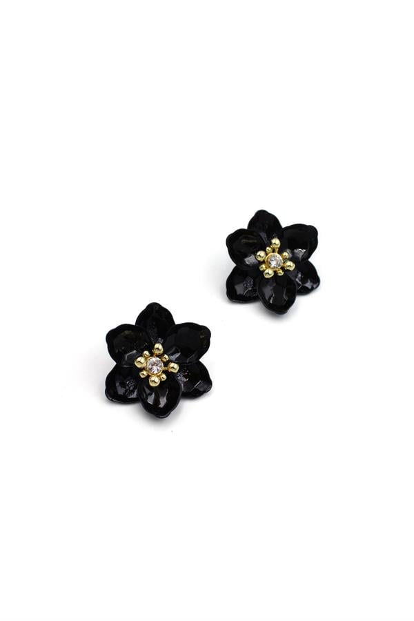 Lotus Çiçek Küpe - Siyah