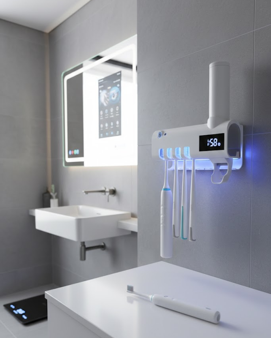 Manyetik Duvar Tipi UV Hijyenik Diş Fırçası Tutucu