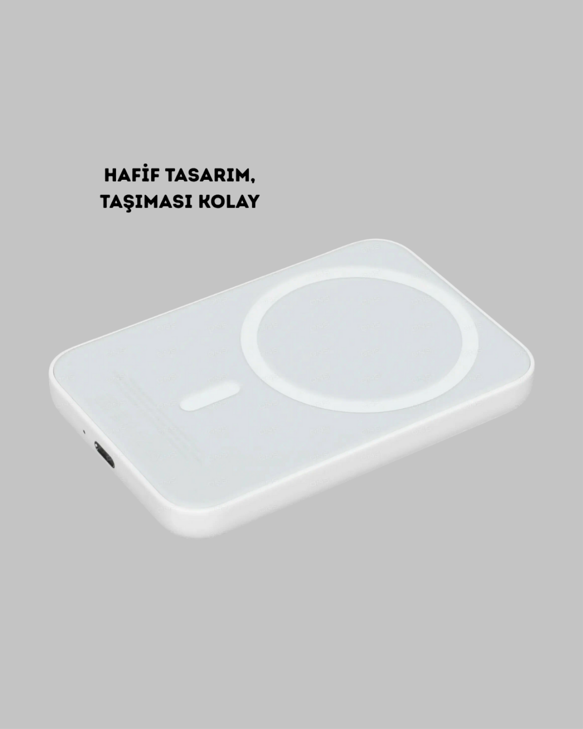 Bu manyetik kablosuz powerbank, kompakt ve ultra hafif yapısı sayesinde her yere kolayca taşınabilir. Cebinize veya çantanıza rahatlıkla sığar, telefonunuzu çizilmelere karşı korur. Minimalist tasarımıyla modern bir görünüm sunarken, günlük kullanım için mükemmel bir konfor sağlar.Kablosuz manyetik şarj özelliği sayesinde kablo karmaşasına son verir; telefonunuzu yalnızca arkasına yerleştirmeniz yeterlidir.