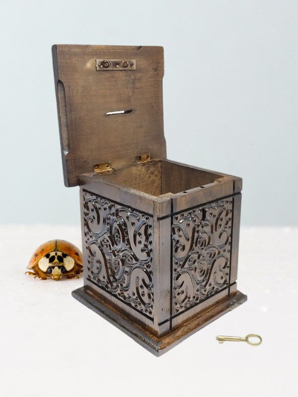 Maraş Oyma Ahşap Kumbara Sandık Tip Box Kutusu Büyük Boy Ceviz Ahşap Dikey Kumbara