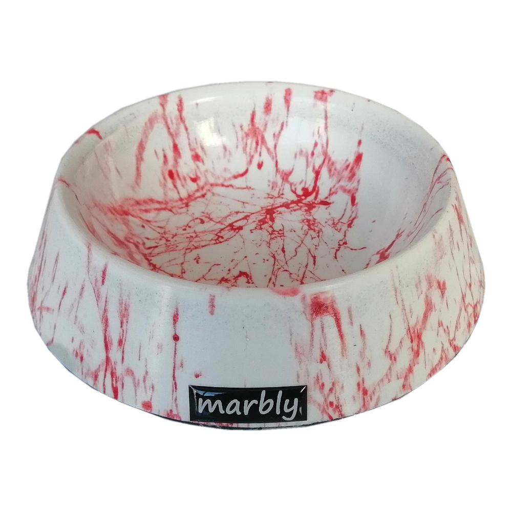 Marbly Kırmızı Beyaz Mermerit Köpek Mama Su Kabı 700 ml