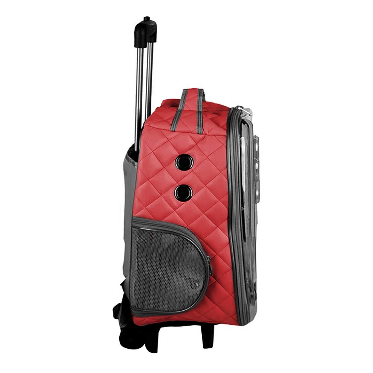 - Elle taşınabilir, sırtta taşınabilir ve tekerlekli çek çekli valiz şeklinde kullanılabilir kedi ve köpek taşıma çantasıdır.