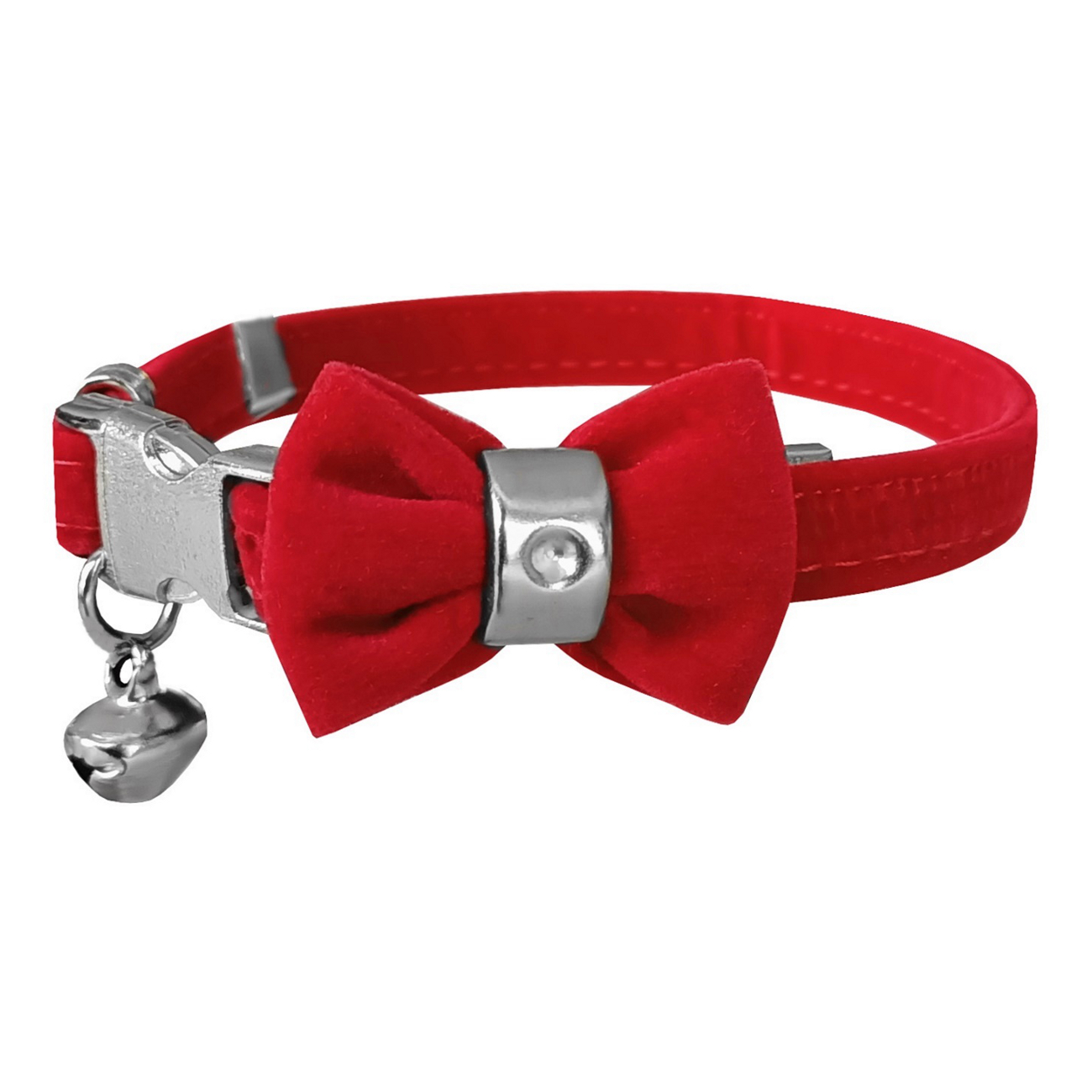 Üzerinde kadife papyon bulunup metal klipsli tasmadır. Kadife kedi boyun tasması metal kuşak aksesuarlı ve üzerinde çan bulunan şık bir tasma çeşididir. Kedi tasmasında sadece insanların açabileceği klips bulunmaktadır. Çok hafif ve kullanımı kolay olan bu tasma hem şık hemde konforlu bir üründür. 1 cm genişliğinde 32 cm uzunluğunda kedi boyun tasmasıdır. Bu kadife dokulu kedi tasması hafif yapısı sayesinde kedinizi rahatsız etmeyecektir. Üzerindeki çan aksesuarı sayesinde kediniz kolay farkedilebilecek, saklandığı yerden kolayca bulunabilecektir . Üzerindeki çan aksesuarı çıkarılabilir özelliktedir. Asorti olan bu kedi tasması rahatlığı yanında bir okadar sevimli dostunuzun şıklığınıda sağlamaktadir.   Ayarlanabilir özelliği sayesinde sevimli dostunuza uygun hale getirilebilir özelliktedir. Acil durumda ve aşırı zorlanmalarda kolayca açılan özel tasarım 'Snap & Easy' klipse sahip kedi boyun tasmasıdır. Birçok kedi kullanmakta olduğu düşük kaliteli boyun tasmalarının bir yere takılması veya sıkışma sonrası onları nefessiz bırakması sonucu yaralanmaktadır. 'Snap&Easy' klipse sahip olup kedinize gönül rahatlığıyla boyun tasması takabilirsiniz.