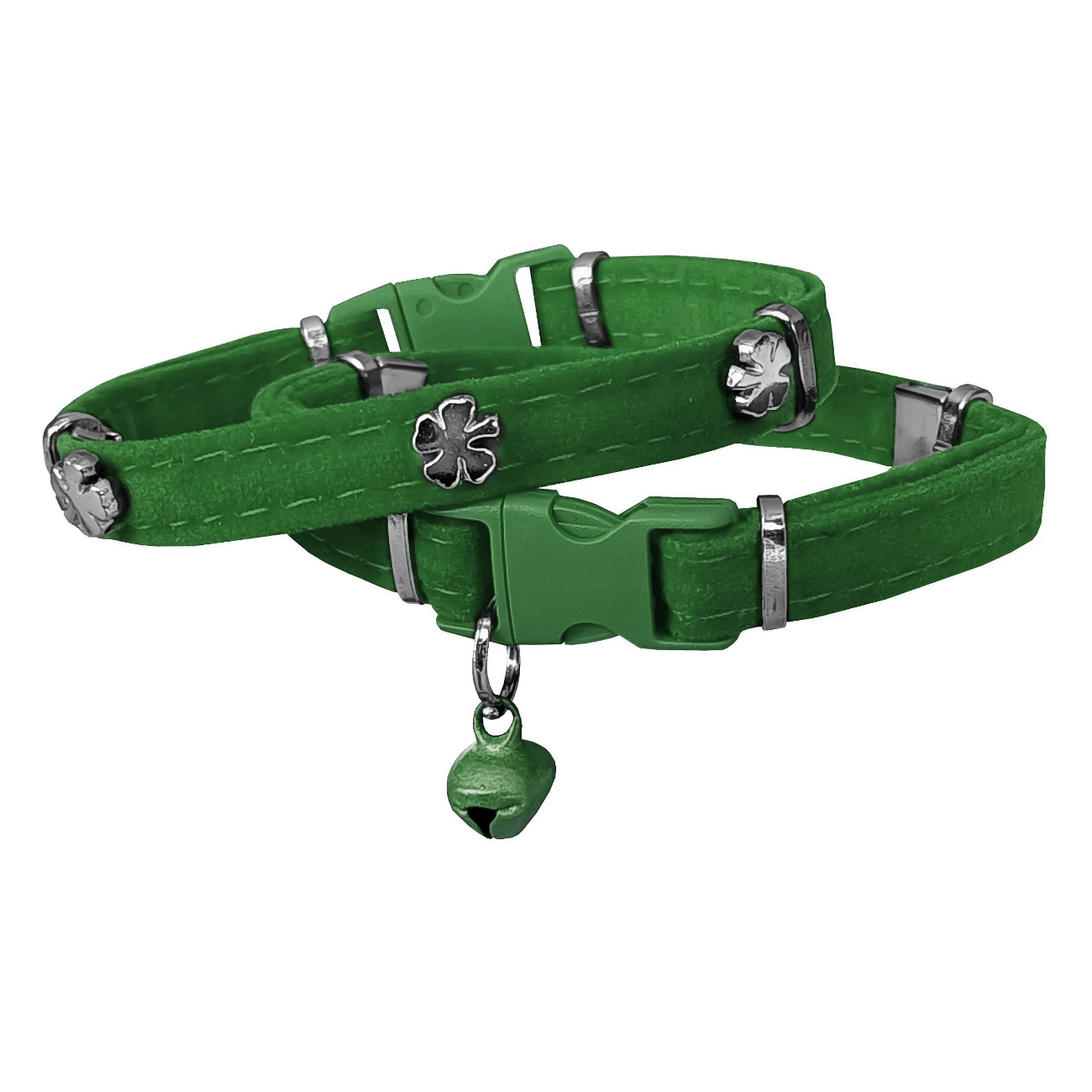 Markapet Kadife Kedi Boyun Tasması Yoncalı 20-32 cm Yeşil