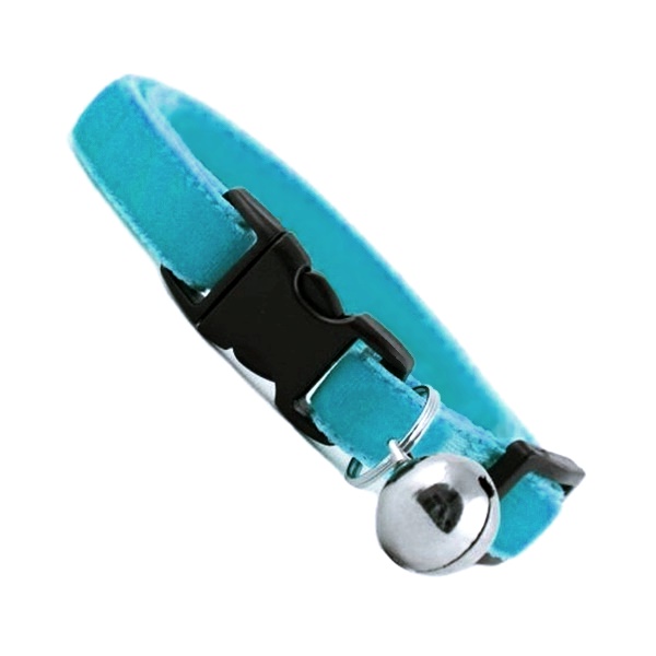 Kedi Boyun Tasması Kadife Dokulu Çanlı 1*30 cm Turkuaz