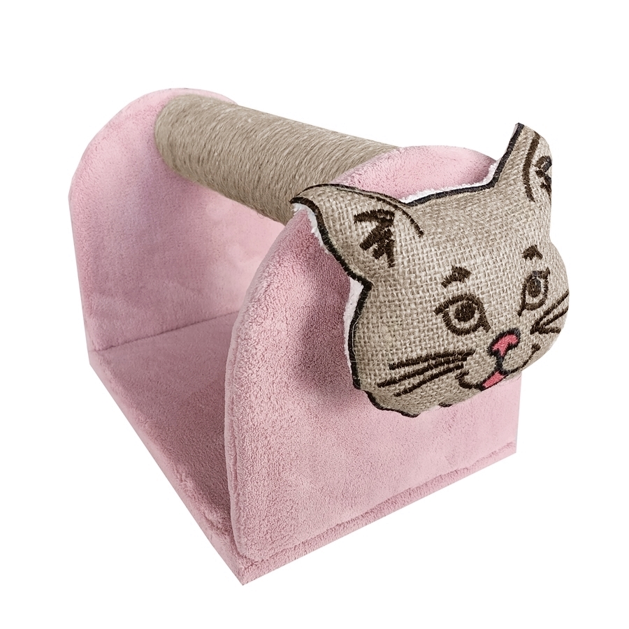 Yavru ve tetişkin kediler için uygundur. Canlı renklerde ve sağlam yapıdadır.Tırmalama ahşaptan yapılmış olup üzeri kaliteli peluşla kaplanmış ve konforlu hale getirilmiştir. Hem oyun alanı hem de sevimli dostunuzun uzun tırnaklarını törpüleyecek bir tırmalama aparatına sahiptir. Kedi tırmalamasının ön kısmında kedi kafası figürü bulunmakta olup bu kısımda yine aynı şekilde kedinizin tırnaklarını törpülemeye yarayan özel bir kumaştan tasarlanmıştır. Ağırdır ve kolay devrilmez. Tırmalama tahtasında jut halat kullanılmıştır. Kumaşı rahatlıkla silinebilen peluş kumaştır. Canlı renkleri ve şık görünümü sayesinde evinizin köşesinde hoş bir ambiyans oluşturacaktır. Pembe ve taba rengin kombinasyonu ile tasarlanmış kedi tırmalama tahtasıdır.