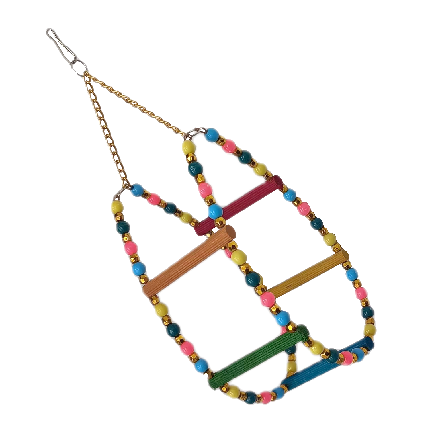 - Renkli boncuklarla özel olarak tasarlanmış kuş kafes salıncağıdır.