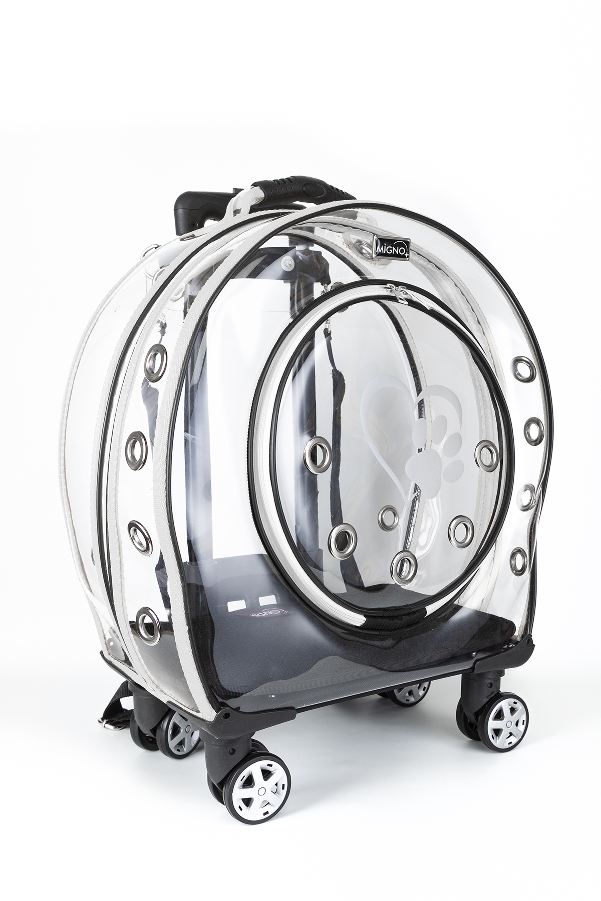 Markapet XXL Şeffaf Tekerlekli Kedi Köpek Taşıma Çantası 53 x 33 x 53 cm Beyaz 15 kg