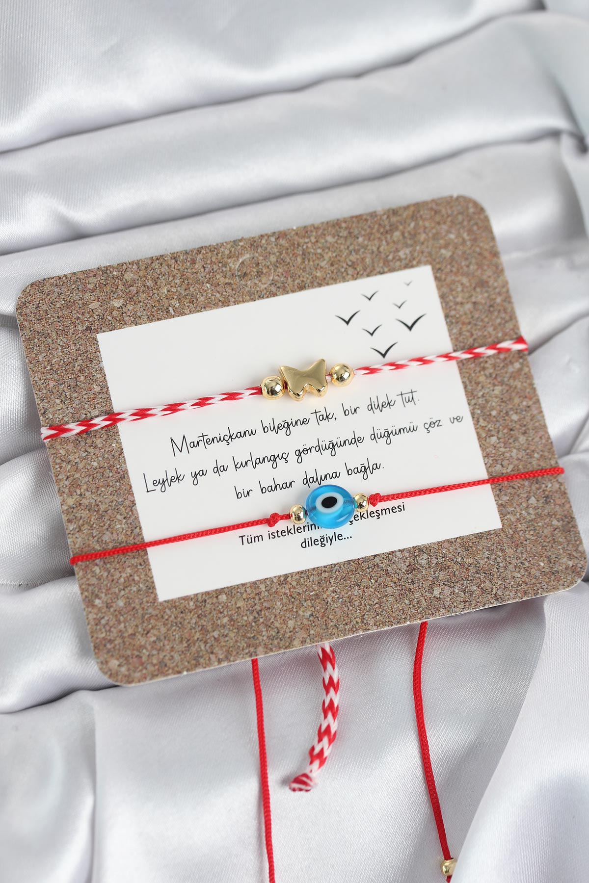Bileklikler asansörlü makromedir. Objelerdeki renkler karışık renkte gönderilebilir.Martenicka Hikâyesi ve KökeniMartenicka geleneği, baharın gelişi, doğanın uyanışı ve iyilik–sağlık dilekleri ile ilişkilidir.En yaygın anlatıya göre:Balkan mitolojisinde “Baba Marta” (Mart Ana) adında bir figür bulunur.Baba Marta’nın yüzü neşeli olduğunda hava ısınır,Kızdığında ise yeniden soğur veya kar yağar.İnsanlar Baba Marta’nın yüzünü güldürmek, baharı çağırmak ve kötü ruhları uzak tutmak için kırmızı-beyaz ipten Martenicka takarlar.