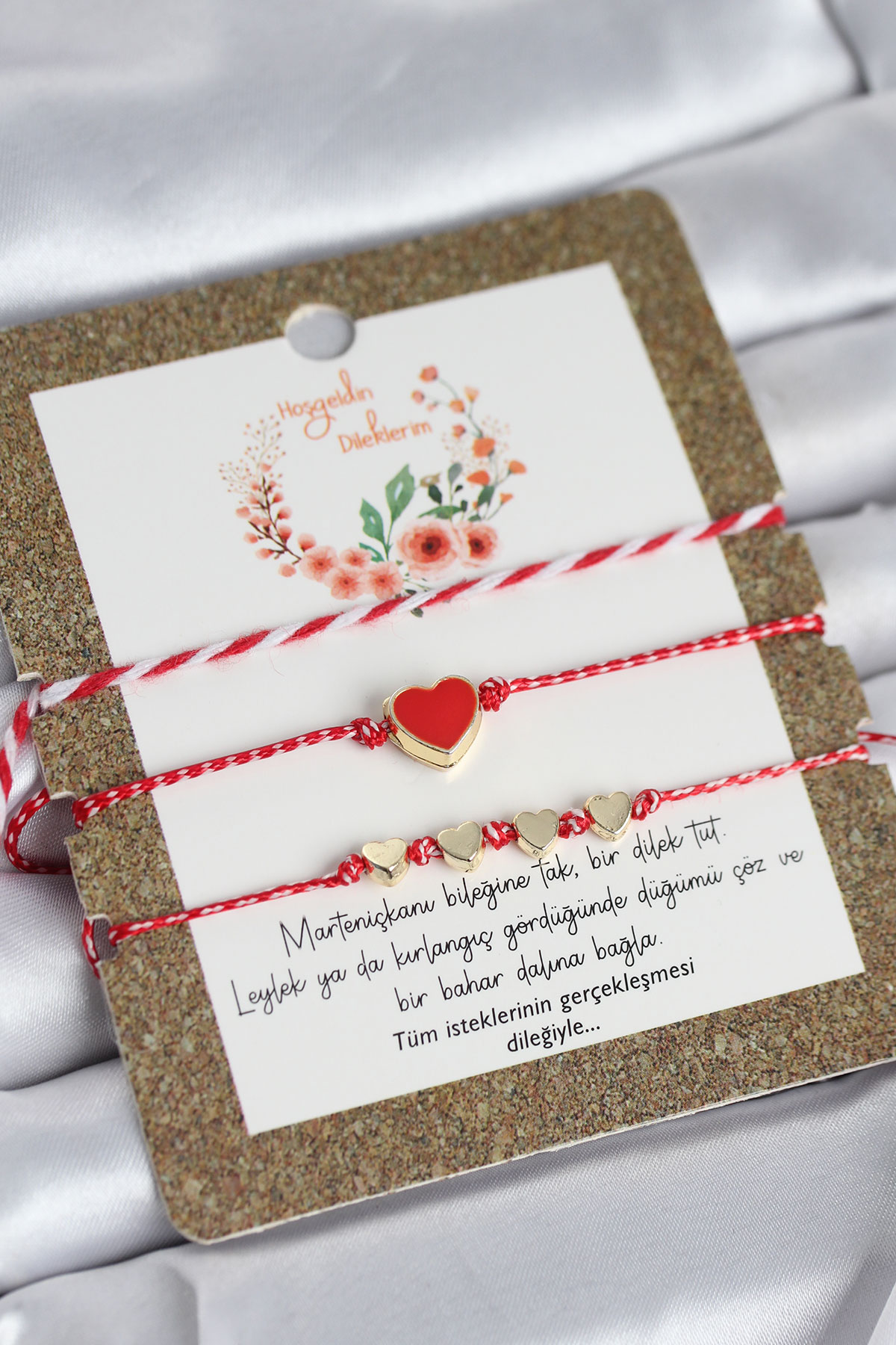 Marteniçka Bileklik 3'lü Kırmızı Mineli Kalp Model - TJ-BB8361