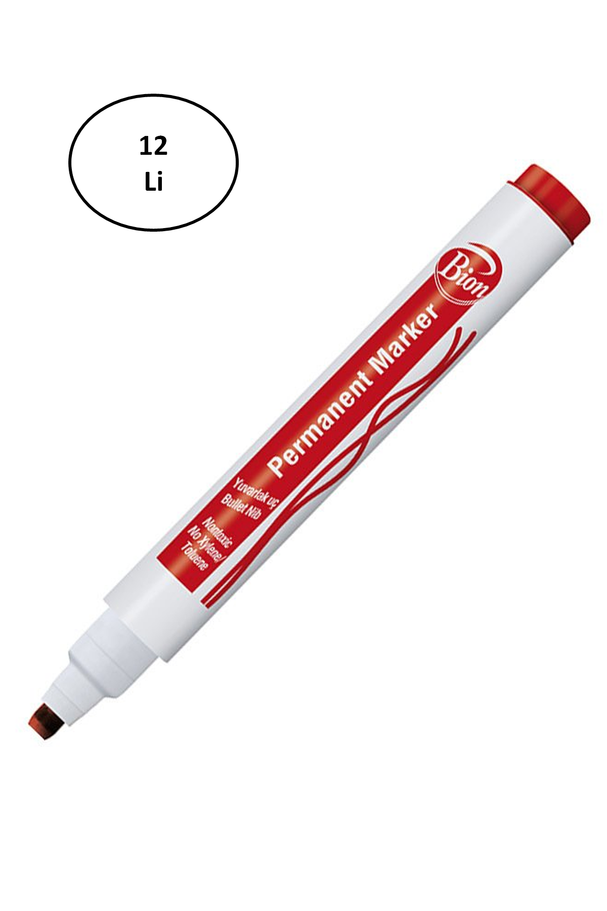 | Mas 9177 Bion Permanent Marker Kesik Uç Kırmızı 12'li - Ürün Kodu : MAS.9177K |