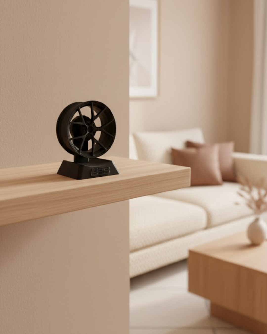 Dekoratif jant modeli, modern ve spor tasarımıyla yaşam alanlarına karakter kazandırır. Masa üstü kullanım için ideal boyutu sayesinde ofis masası, çalışma alanı, raf veya vitrin üzerinde şık bir görünüm sunar. Detaylı jant tasarımı, otomobil tutkunları için estetik ve dikkat çekici bir dekoratif obje oluşturur. Minimal yapısı sayesinde farklı dekorasyon stilleriyle kolayca uyum sağlar. Ev ve ofis ortamlarında farklılık yaratmak isteyenler için özel bir dekor aksesuarıdır.