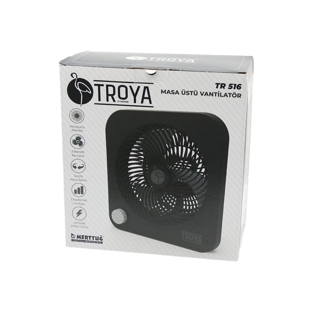 Masa Üstü Vantilatör Fan=22Cm 3 Kademe Hız 40W 3 Pervane Siyah Pls.Stand=28X27X13Cm Tr-516