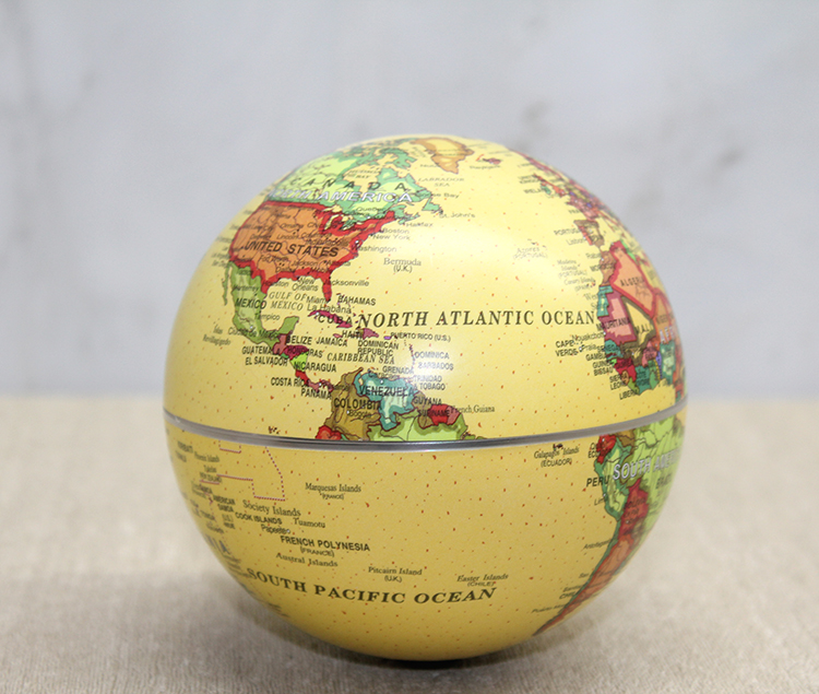 Masaüstü Dönen Dünya Küre - Model 3, 10,6 cm kompakt boyutu ile küçük alanlarda bile rahatlıkla konumlandırılabilen şık bir dekoratif objedir. Küre formunun dengeli ve akıcı dönüş mekanizması sayesinde hem görsel hem de işlevsel bir kullanım sunar. Sarı zemin tonları üzerine detaylandırılmış harita baskısı, klasik atlas görünümünü modern bir masaüstü tasarımıyla bir araya getirir. Özellikle çalışma masası, kitaplık ve ofis alanlarında dikkat çekici bir aksesuar olarak öne çıkar ve ortama entelektüel bir hava katar. Küçük boyutuna rağmen net harita detayları sayesinde hem dekoratif hem de eğitici bir obje olarak değerlendirilebilir. Minimal ölçüleri sayesinde dar alanlar için ideal bir küçük masaüstü dünya küresi seçeneğidir. Aynı zamanda ofis ve ev dekorasyonuna uyum sağlayan kompakt yapısıyla dönen dekoratif dünya küre arayan kullanıcılar için pratik ve estetik bir alternatiftir.