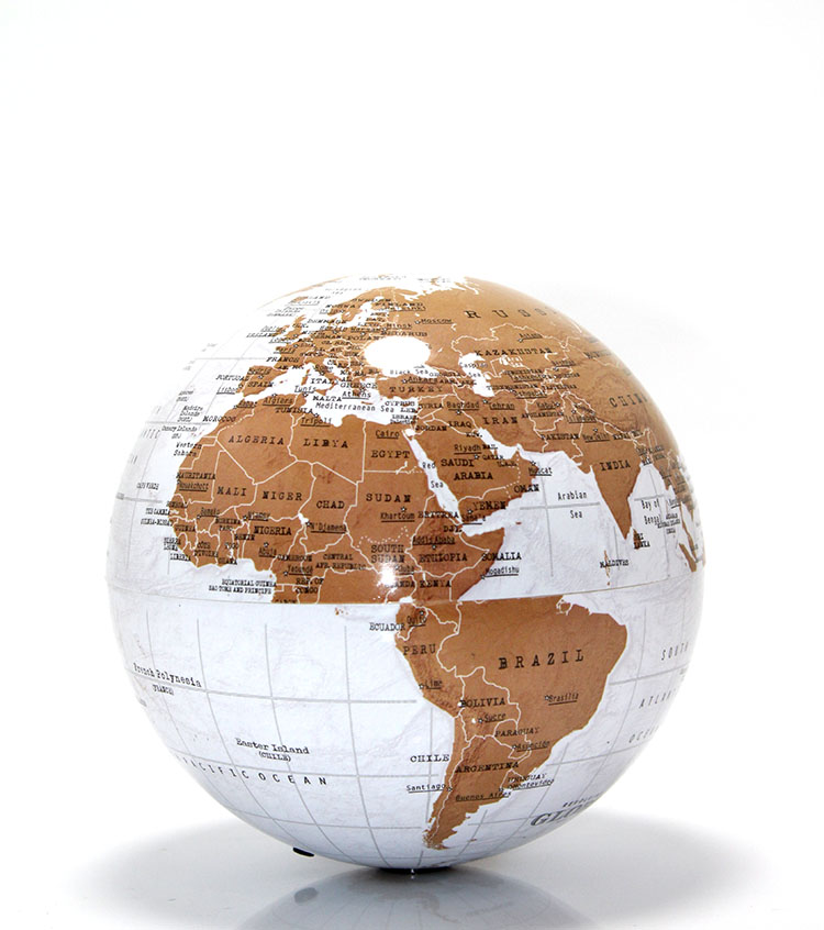 Masaüstü Dönen Dünya Küre - Model 6, 14x14 cm ölçüsüyle hem kompakt hem de estetik bir dekoratif objedir. Beyaz zemin üzerine kahverengi kıta detaylarıyla tasarlanmış harita baskısı, modern ve sade bir görünüm sunar. Serbest dönebilen mekanizması sayesinde küre rahatlıkla çevrilebilir ve hem dekoratif hem de bilgilendirici bir kullanım sağlar. Çalışma masası, ofis ortamı, kitaplık veya genç odalarında şık bir tamamlayıcı olarak tercih edilebilir. Dengeli yapısı sayesinde masa üzerinde sabit durur ve minimal tasarımıyla bulunduğu ortama zarif bir hava katar. Modern çizgilere sahip tasarımıyla dekorasyonuna farklı bir dokunuş katmak isteyenler için ideal bir masaüstü dekoratif dünya küresi seçeneğidir. Aynı zamanda kompakt boyutu sayesinde hem ev hem ofis kullanımına uygun bir 14x14 cm dönen dünya küre alternatifidir.