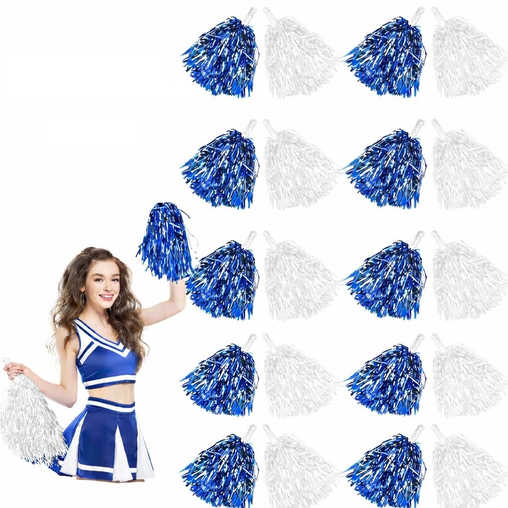 Mavi Beyaz Metalik Dolgun Gösteri Ponponu 20 Adet (10 Çift)