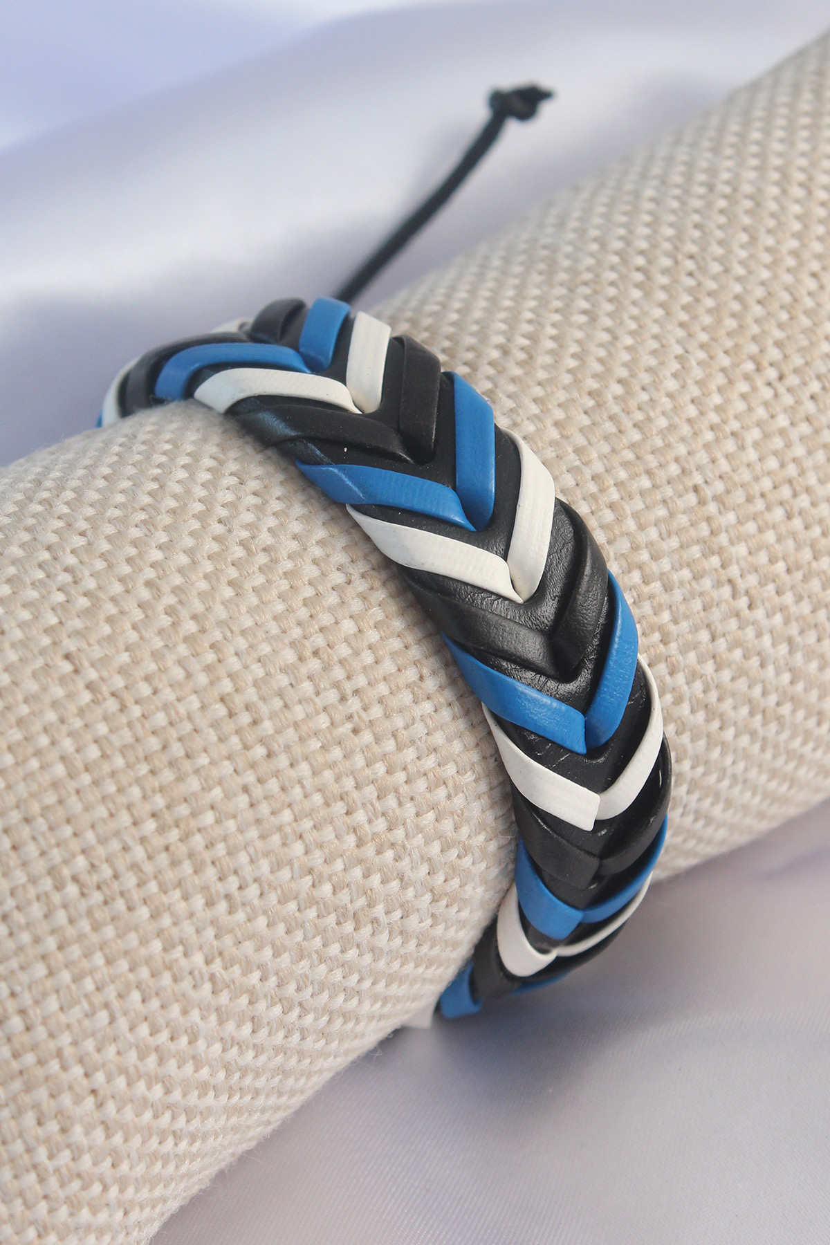 Mavi Beyaz Renk Siyah Deri İpli Erkek Bileklik - TJ-EB3584