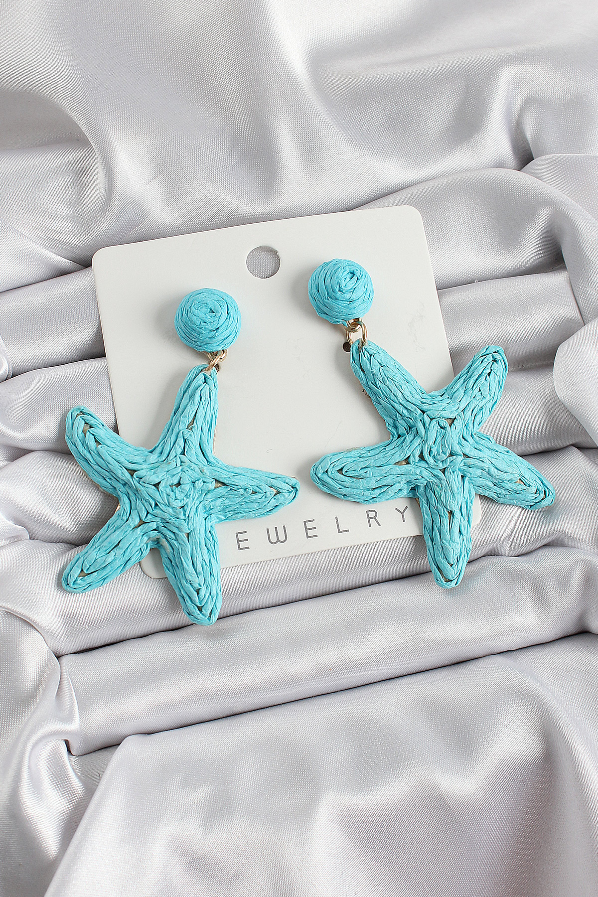 Mavi Deniz Yıldızı Figürlü Hasır Örgü Model Gold Renk Kadın Küpe - TJ-BKP10723
