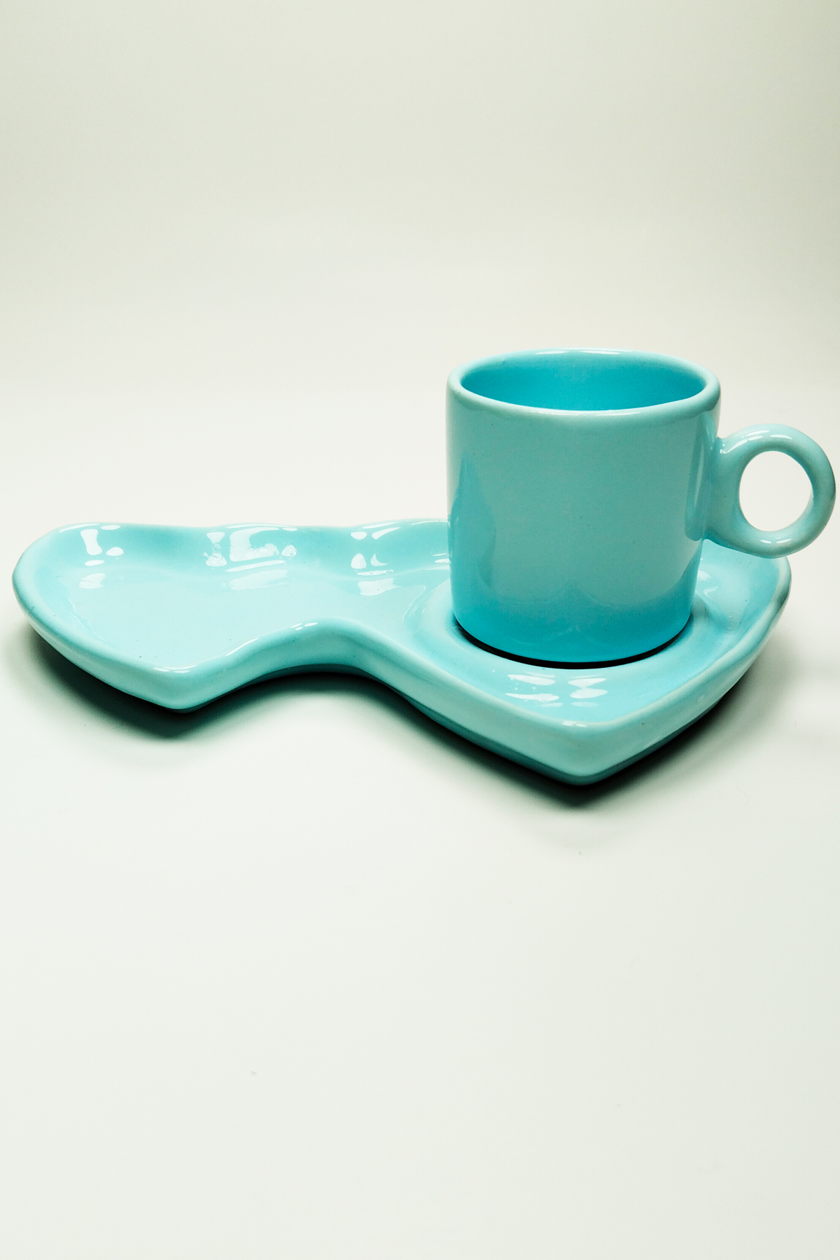 Mavi Lokumluk Gözlü Seramik Kahve Fincanı Kalp Tasarım