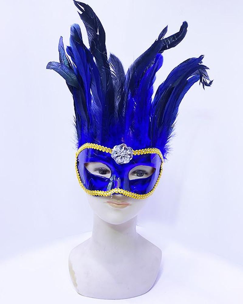 Mavi Renk Ekstra Bol Kuş Tüylü Venedik Maskesi