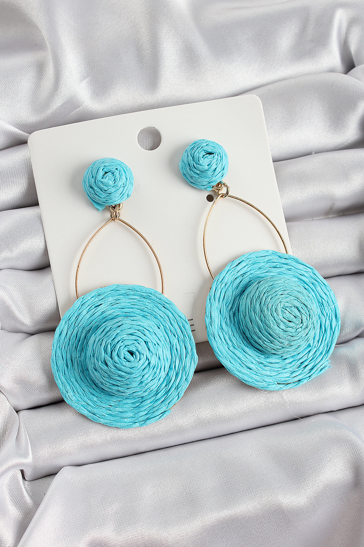 Mavi Şapka Figürlü Hasır Örgü Model Sallantılı Gold Renk Kadın Küpe - TJ-BKP10702