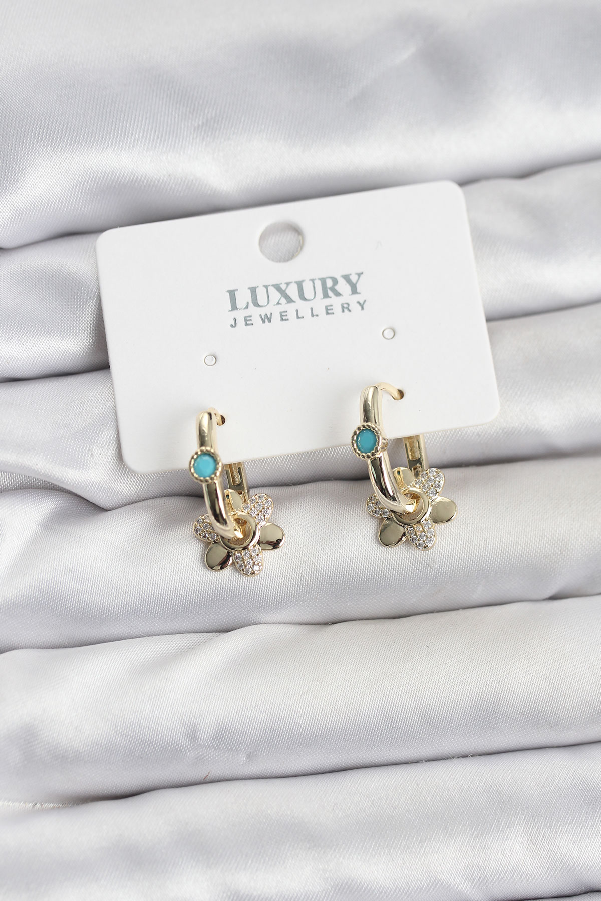 Mavi Taş Detaylı Pirinç Gold Renk Kadın Göçmen Küpesi - TJ-BKP11598