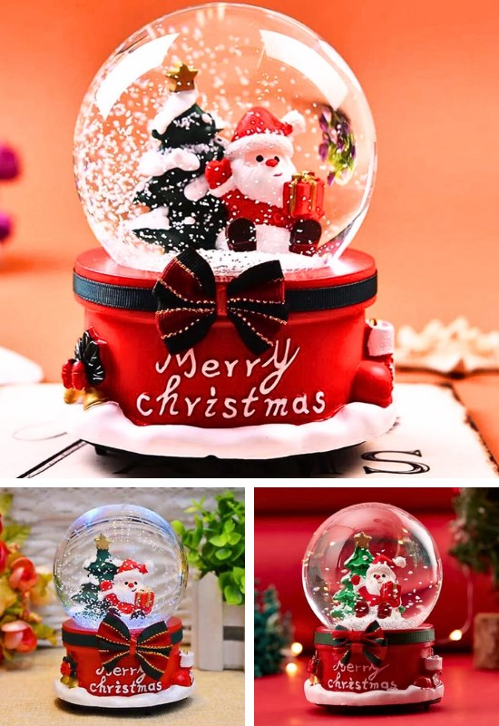 Mega Boy Yılbaşı Noel Baba ve Çam Ağacı Temalı Kar Püskürtmeli Işıklı Müzikli Kar Küresi 16 cm- 17A