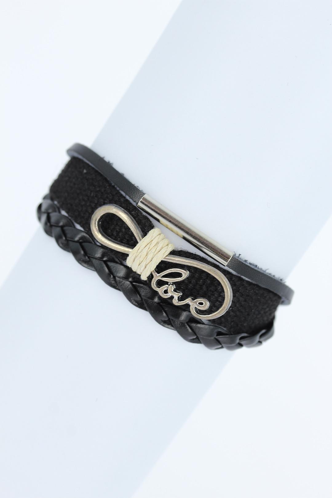 Metal Aksesuarlı Siyah Renk Deri Bileklik - TJ-EB1716