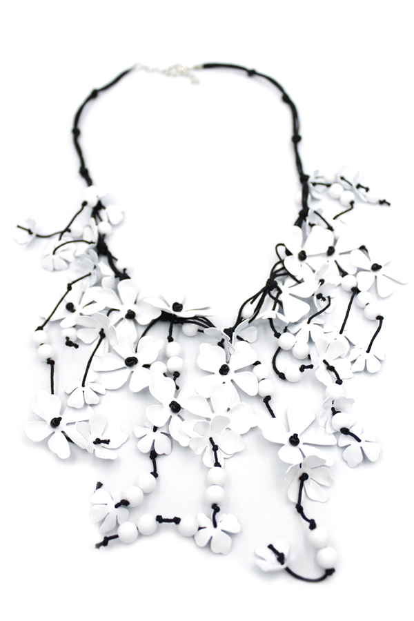Metal Çiçek Kolye - Beyaz