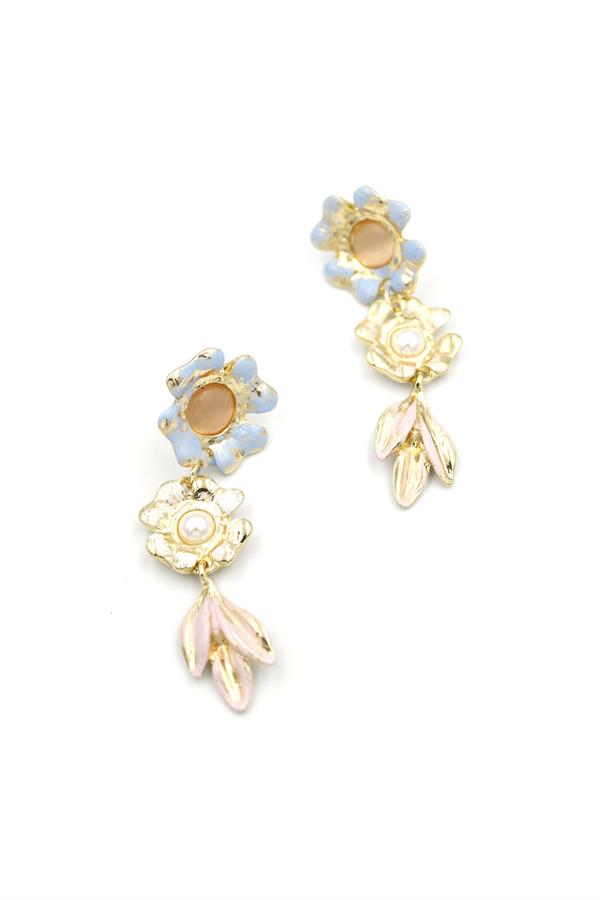 Metal Çiçek Küpe - Pembe