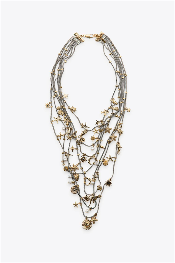 Metal Deniz Temalı Çoklu Kolye - Gümüş