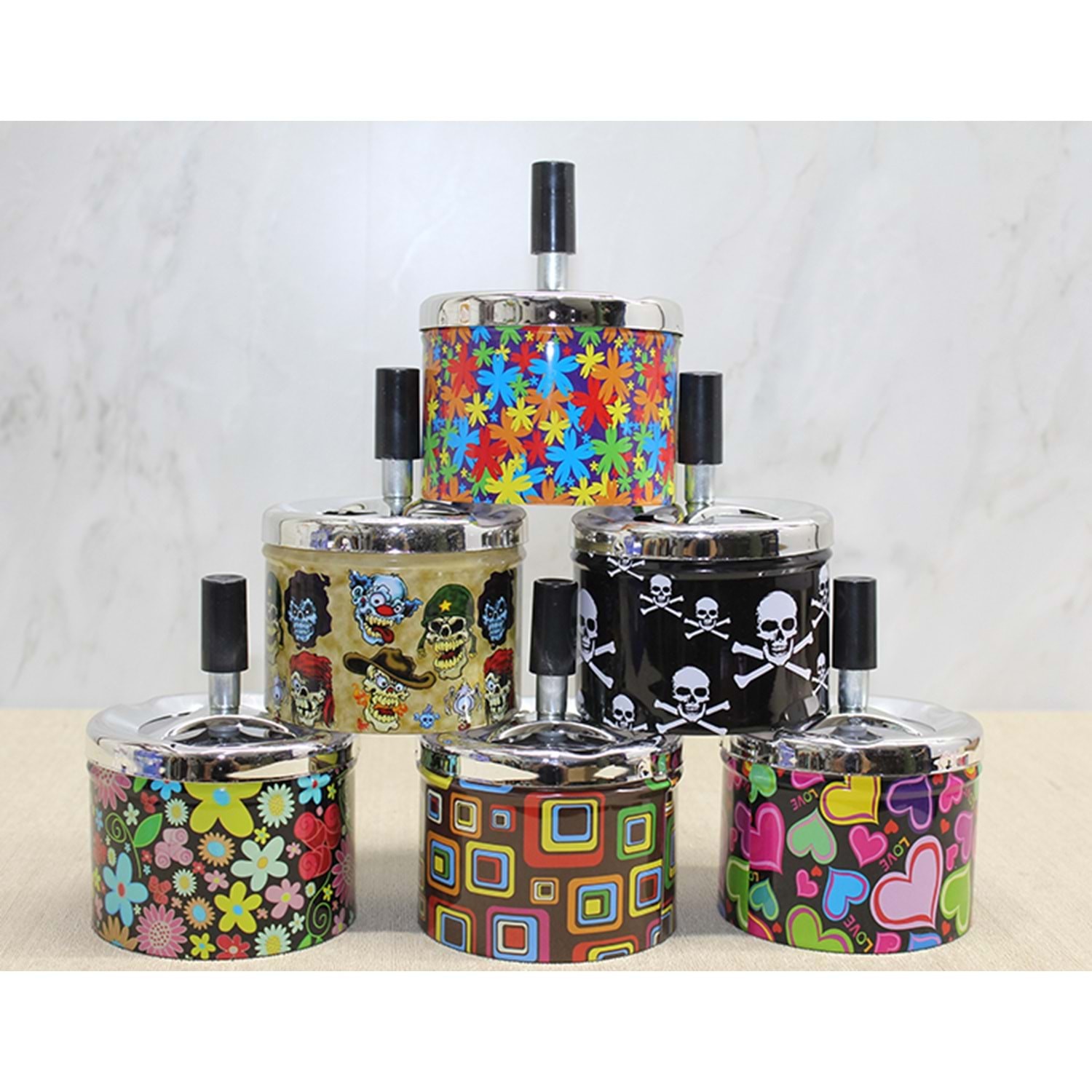 Metal Renkli Basmalı Küllük Yuvarlak