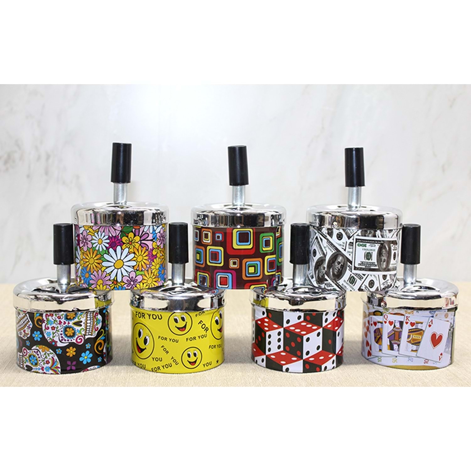 Metal Renkli Basmalı Küllük Yuvarlak