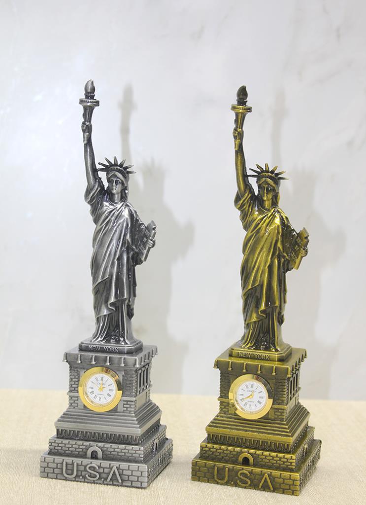 METAL SAATLİ ÖZGÜRLÜK ANITIÜrün ÖzellikleriMetal Saatli Özgürlük Anıtı, ikonik Amerika simgesi olan Özgürlük Heykeli'ni saat işleviyle birleştiren şık bir dekor objesidir. Detaylı işçiliği ve kaliteli metal malzemesi ile ev, ofis veya koleksiyonlar için mükemmel bir tamamlayıcıdır. Saat mekanizması, bibloya işlevsellik kazandırarak masa veya vitrin dekorunuza nostaljik bir hava katar. Gümüş ve antik altın renk seçenekleriyle sunulmaktadır.Paket İçeriği1 Adet Metal Saatli Özgürlük Anıtı
