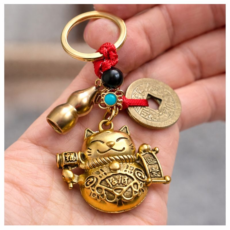 1 adet Metal Şans Ve Bereket Kedisi Anahtarlık Model 1