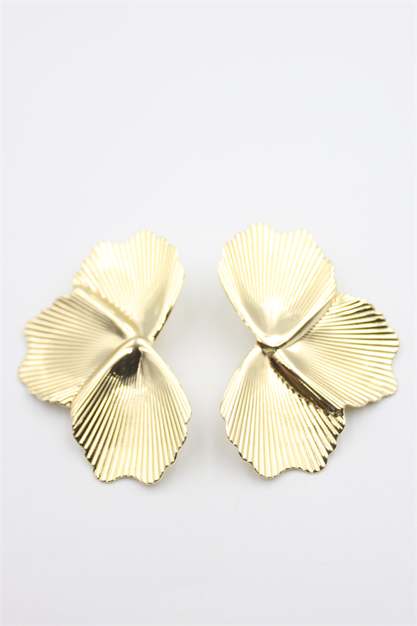 Metal Yaprak Küpe - Altın
