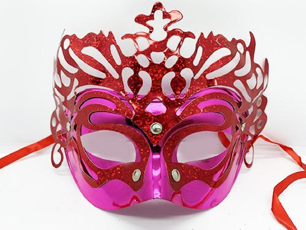 Metalize Ekstra Parlak Hologramlı Parti Maskesi Kırmızı Renk 23x14 cm