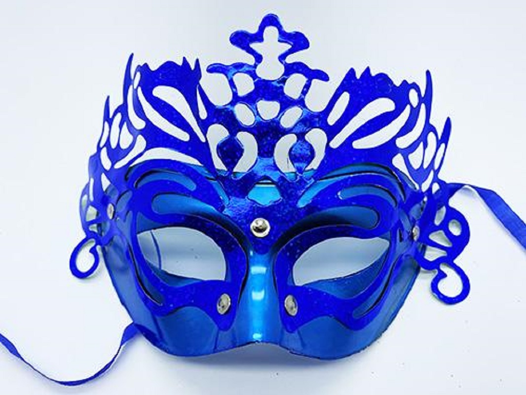 Metalize Ekstra Parlak Hologramlı Parti Maskesi Mavi Renk 23x14 cm