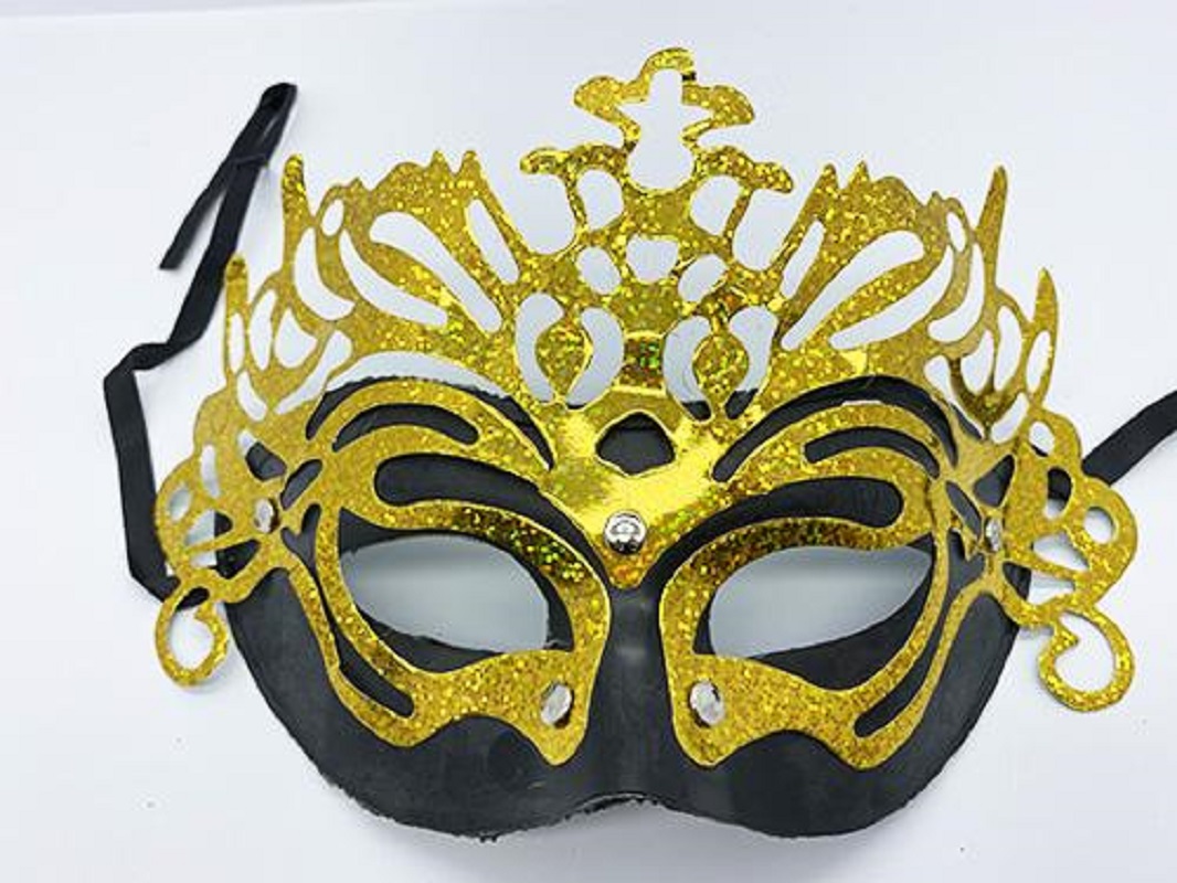 Metalize Ekstra Parlak Hologramlı Parti Maskesi Siyah-Altın Renk 23x14 cm