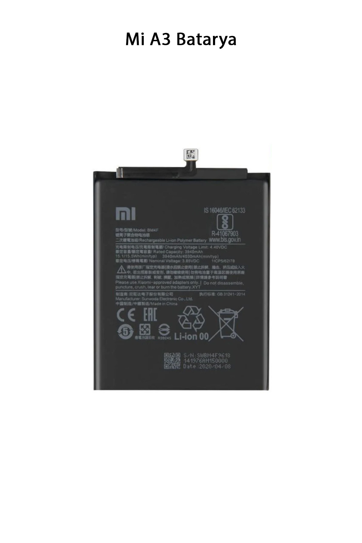 | Xiaomi Mi A3, 4.030 mAh Li-Po bataryaya sahip bir akıllı telefondur. Bu batarya, Qualcomm Snapdragon 665 işlemci tarafından desteklenir ve 18W hızlı şarj desteği sunar. Bu sayede, cihazın bataryası hızlı bir şekilde şarj edilebilir. Paket İçeriği : 1 Adet Mi A3 Batarya |