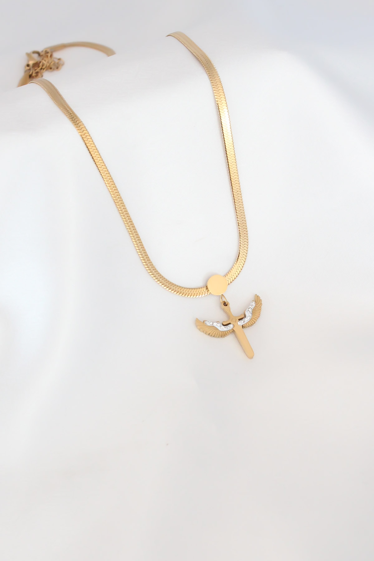 Mikail Figür Zirkon Taş Detay Gold Renk Çelik İtalyan Zincir Kadın Kolye - TJ-BKO6569