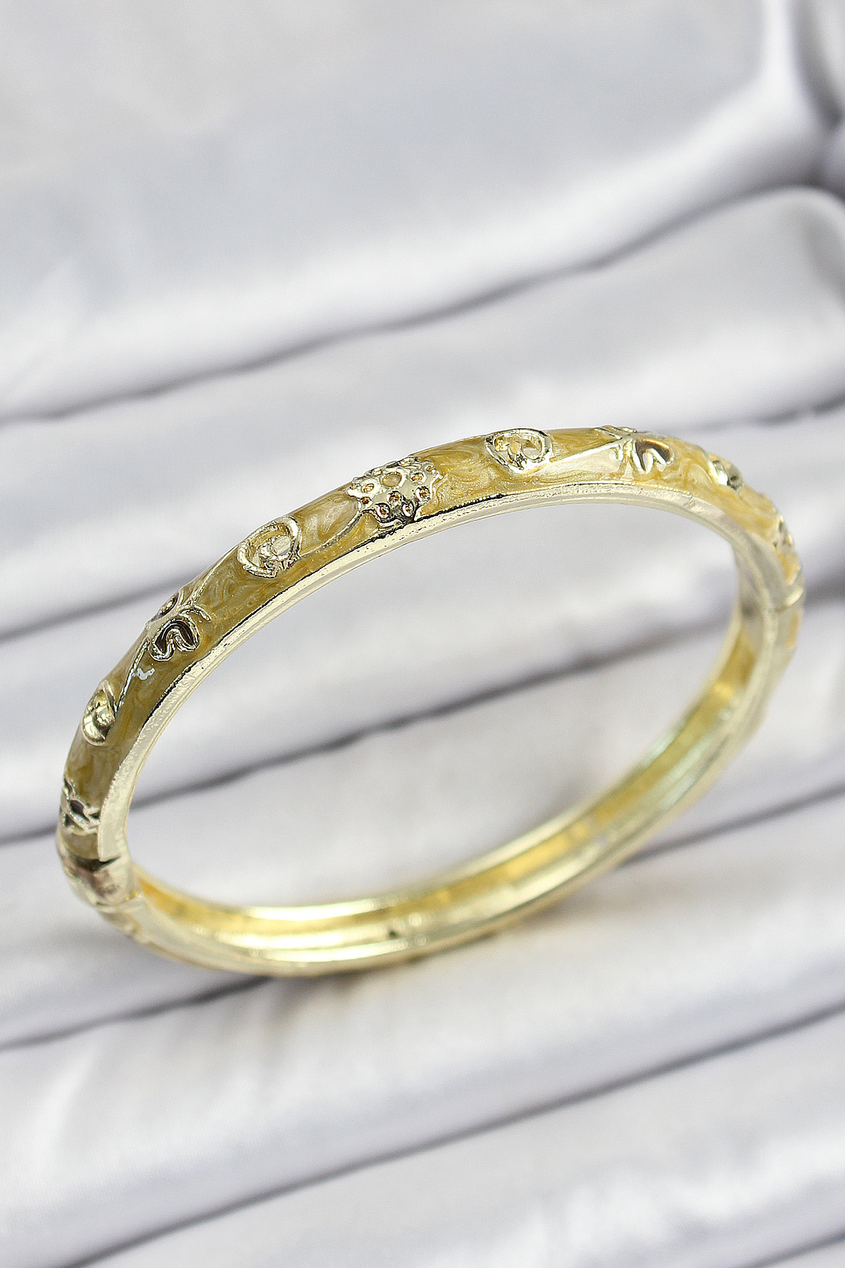 Mineli Gold Pirinç Sarı Renk Motifli Kadın Kelepçe - TJ-BB7181