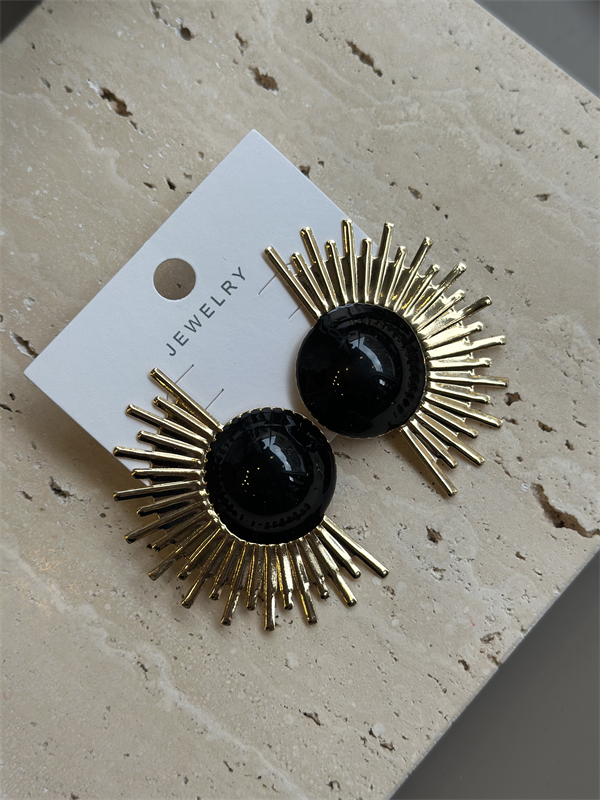 Mineli Güneş Küpe - Siyah