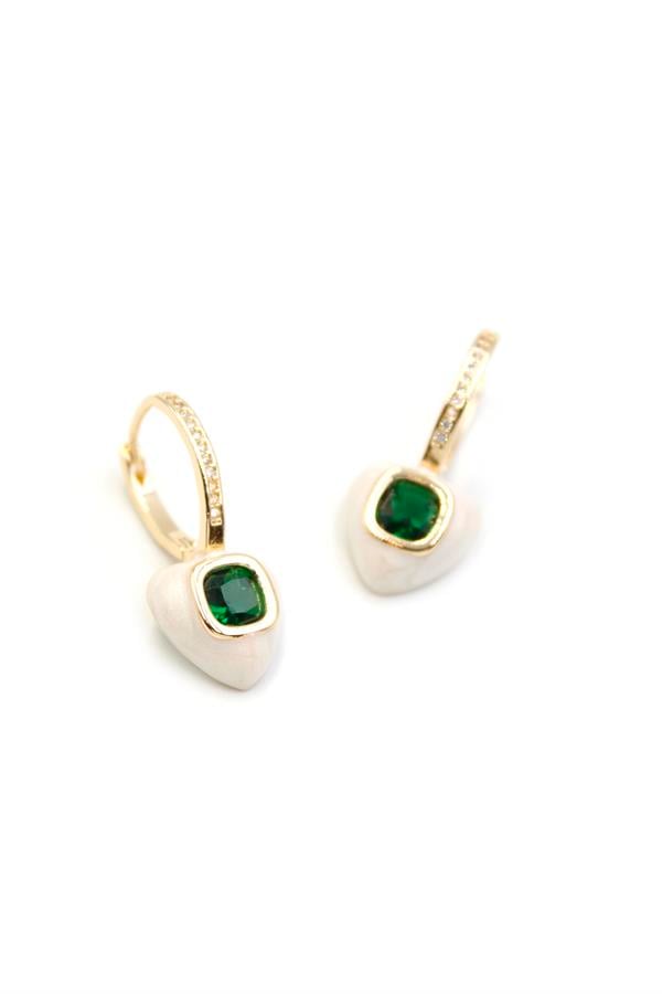 Mineli Kalp Küpe - Yeşil