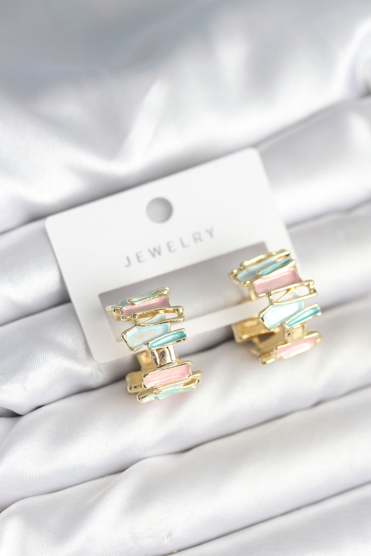 Mineli Karışık Renkli Gold Kadın Küpe - TJ-BKP11283