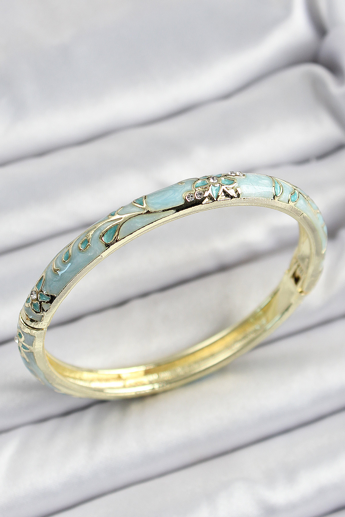 Mineli Pirinç Buz Mavisi Çiçek Desenli Kadın Kelepçe - TJ-BB7137