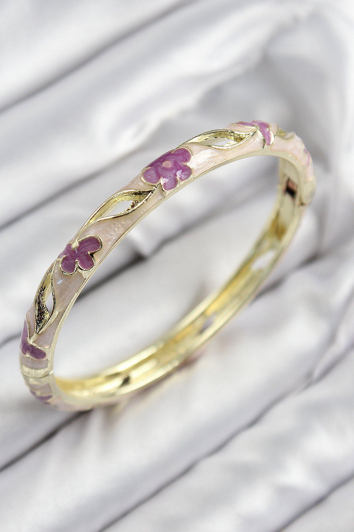 Mineli Pirinç Çiçek Motifli Gold Renk Kadın Kelepçe - TJ-BB7613