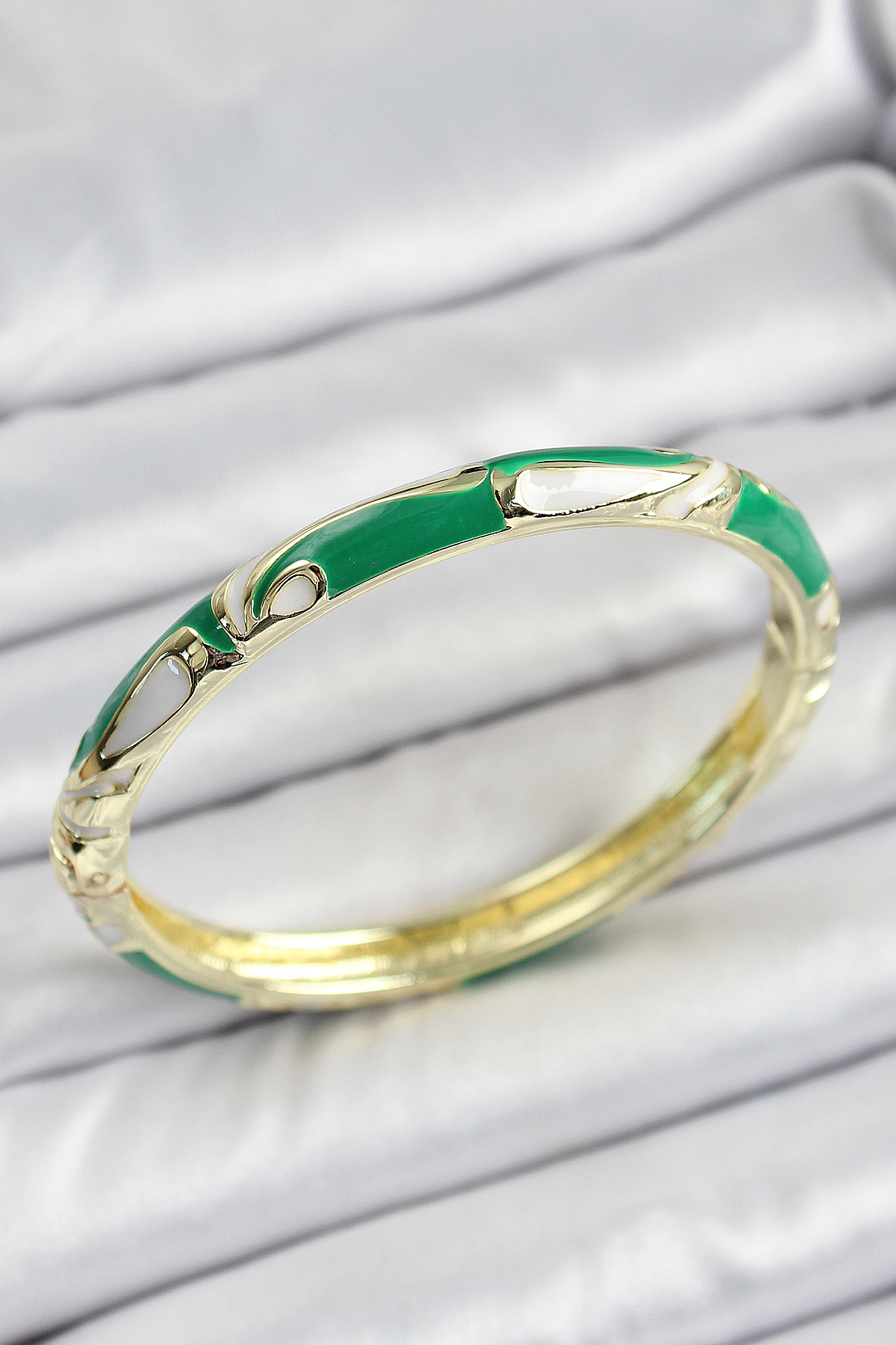 Mineli Pirinç Çiçek Motifli Yeşil Renk Kadın Kelepçe - TJ-BB7145