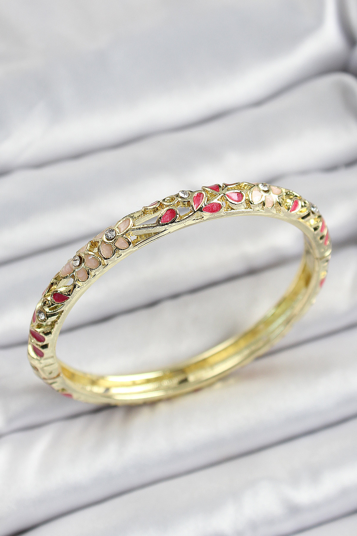 Mineli Pirinç Fuşya Çiçek Motif Desenli Kadın Kelepçe - TJ-BB7136