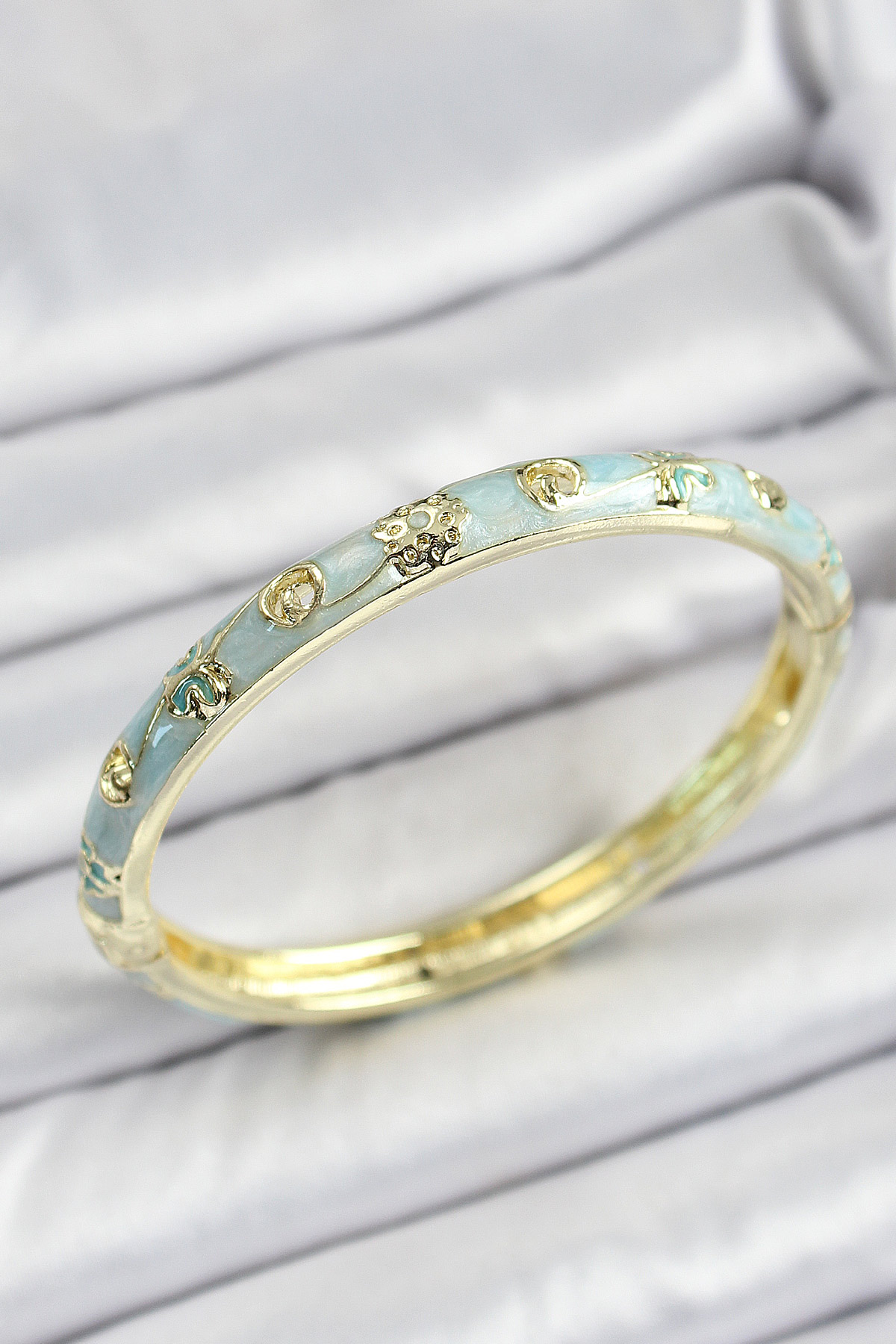 Mineli Pirinç Gold Renk Mavi Renk Motifli Kadın Kelepçe - TJ-BB7180